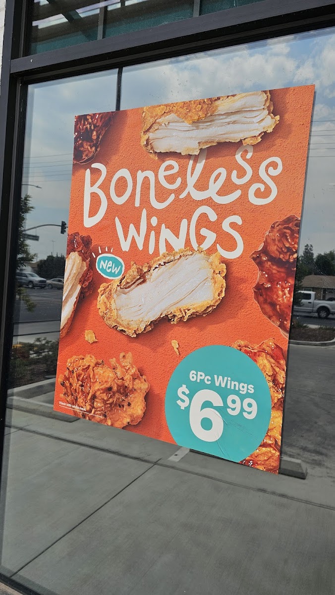 6 Piece Boneless Wings marinated In Louisiana spices and fried to perfection for unmatched flavor. Made with all-white meat, these wings are available in a range of spice levels and delectable flavors. Includes 1 dipping sauce.. Served with 1 regular side and 1 drink.